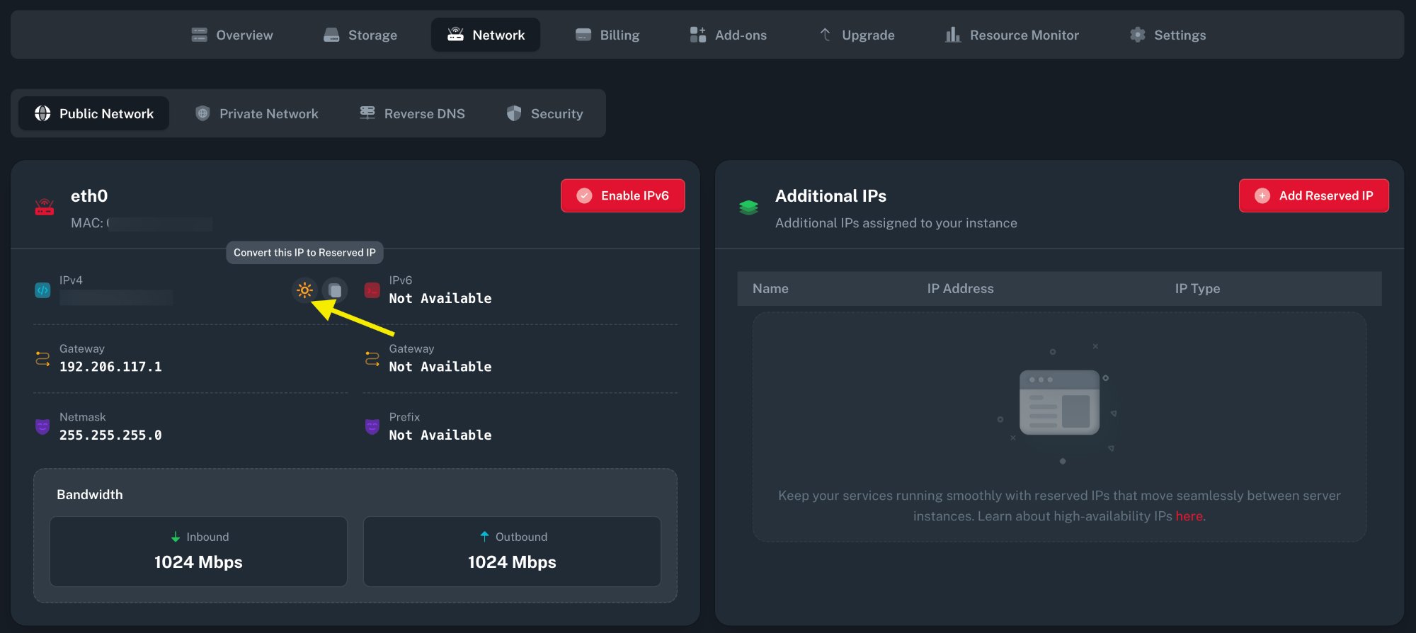 Click the conversion button to convert it to a Reserved IP